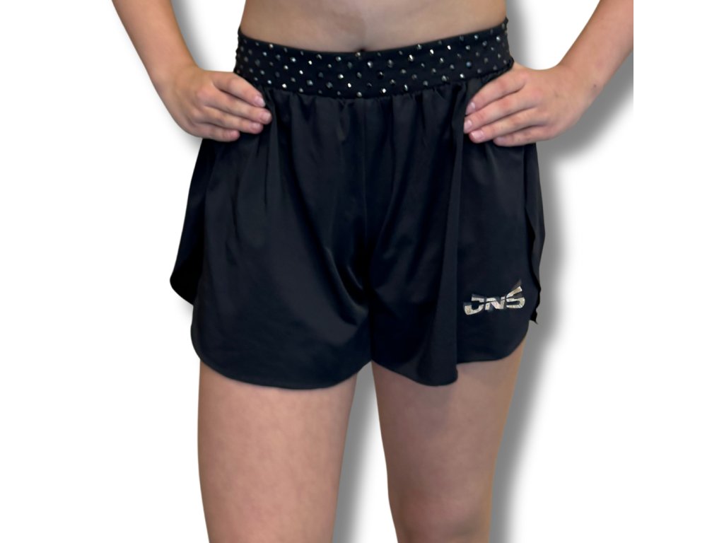 JNS kraťasy Midnight, které jsou pohodlné a volnější, s třpytivými kamínky, které rozzáří každý tréninkový outfit.