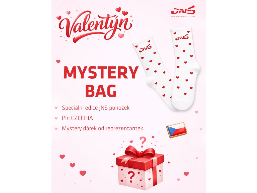 Udělej si radost nebo potěš někoho blízkého speciálním Valentýnským Mystery Bagem JNS, který vznikl jako podpora cheerleadingové reprezentace pro Mistrovství světa 2026. Každý balíček je jiný, jedinečný a připravený s láskou.
